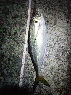 抜き揚げると27cmの体こうの良いアジでした~♪