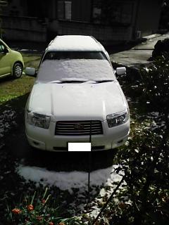 深夜にかけて雪が降って、朝起きたら少し積もってました。